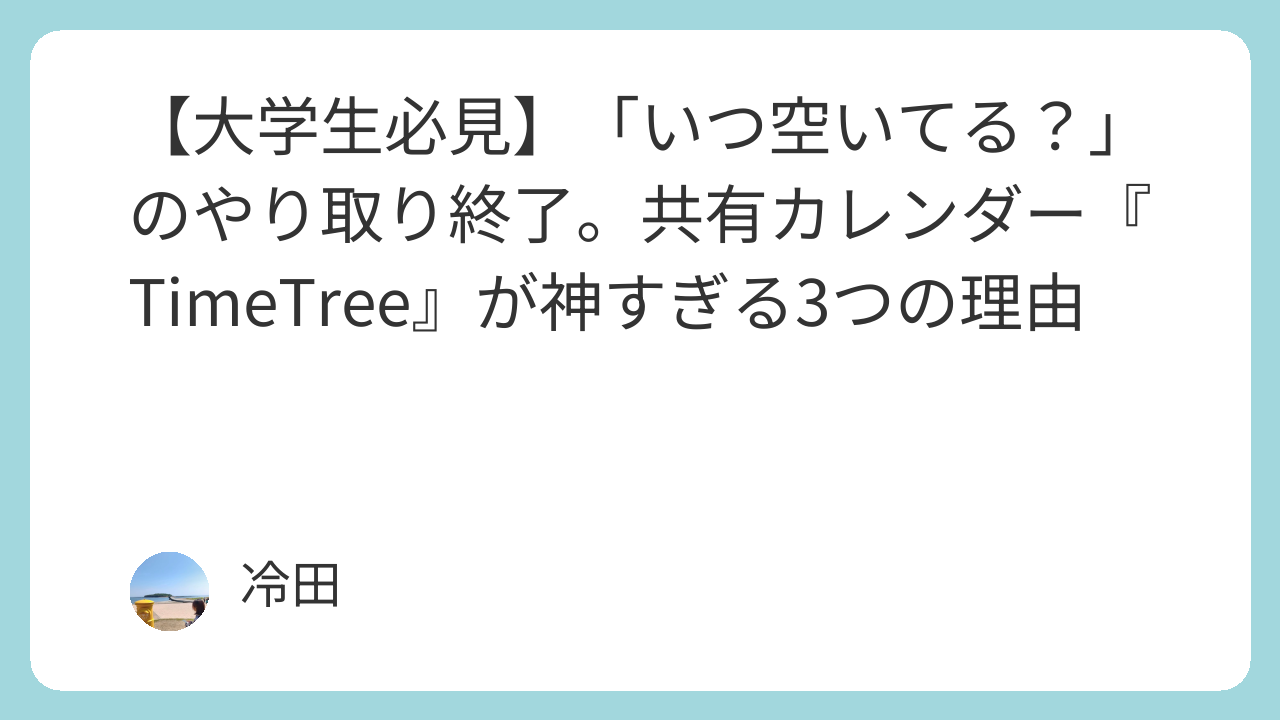 今回は、私の大学生活を劇的に快適にしてくれたスケジュール共有アプリ『TimeTree(タイムツリー)』について紹介します。